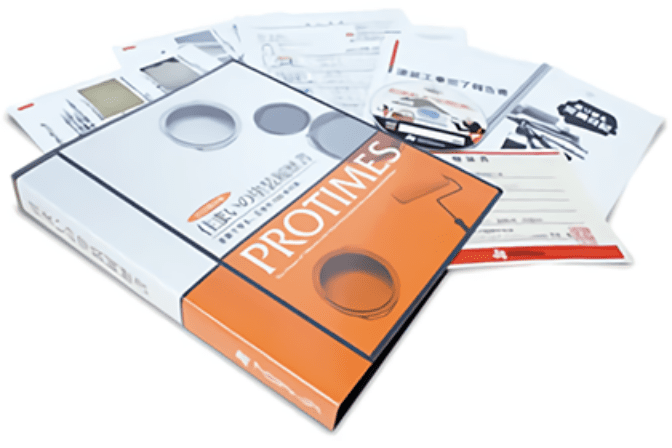プロタイムズでは、メンテナンスの証明として、使用塗料、施工内容、検査結果、保証書をはじめとした塗装工事に関わるすべての書類をまとめて保管し、履歴として残せるように「住宅履歴情報ファイル」をお渡ししています。