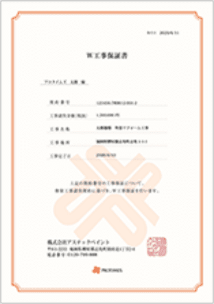 保証記録は本部が保管し、万が一保証書を紛失された場合などは本部より再発行致します。施主様の安心と満足のために、施工後も長期に渡りしっかりサポートさせていただきます。