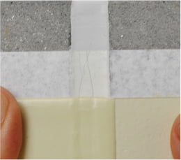 • シーリング材の上にシリコン、フッ素、無機塗料などの硬質の塗料を施工すると、目地の動きに追随できず、塗膜にひび割れが生じます。ひび割れ箇所からシーリング材に亀裂が入り、切断されると、水の浸入経路が発生してしまいます。対してプラチナECコート5000EXは目地の動きに塗膜が追随するため、ひび割れが発生しにくく、水を浸入させません。